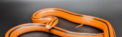 Thai bamboo rat snakes (sometimes simply called “coxi”), are small, fossorial (burrowing) snakes from the elevated, mountain region of northwest Thailand. Instantly recognizable by their vibrant red-orange color and jet black racing stripes, these animals thrive in bioactive enclosures. As they come from an elevated rainforest, they require access to water at all times, with high humidity and regular misting, and plentiful substrate for burrowing and places to hide. They are handleable and get used to human interaction easily, but their small size as juveniles and careful temperature and humidity requirements can make them challenging for novice keepers.